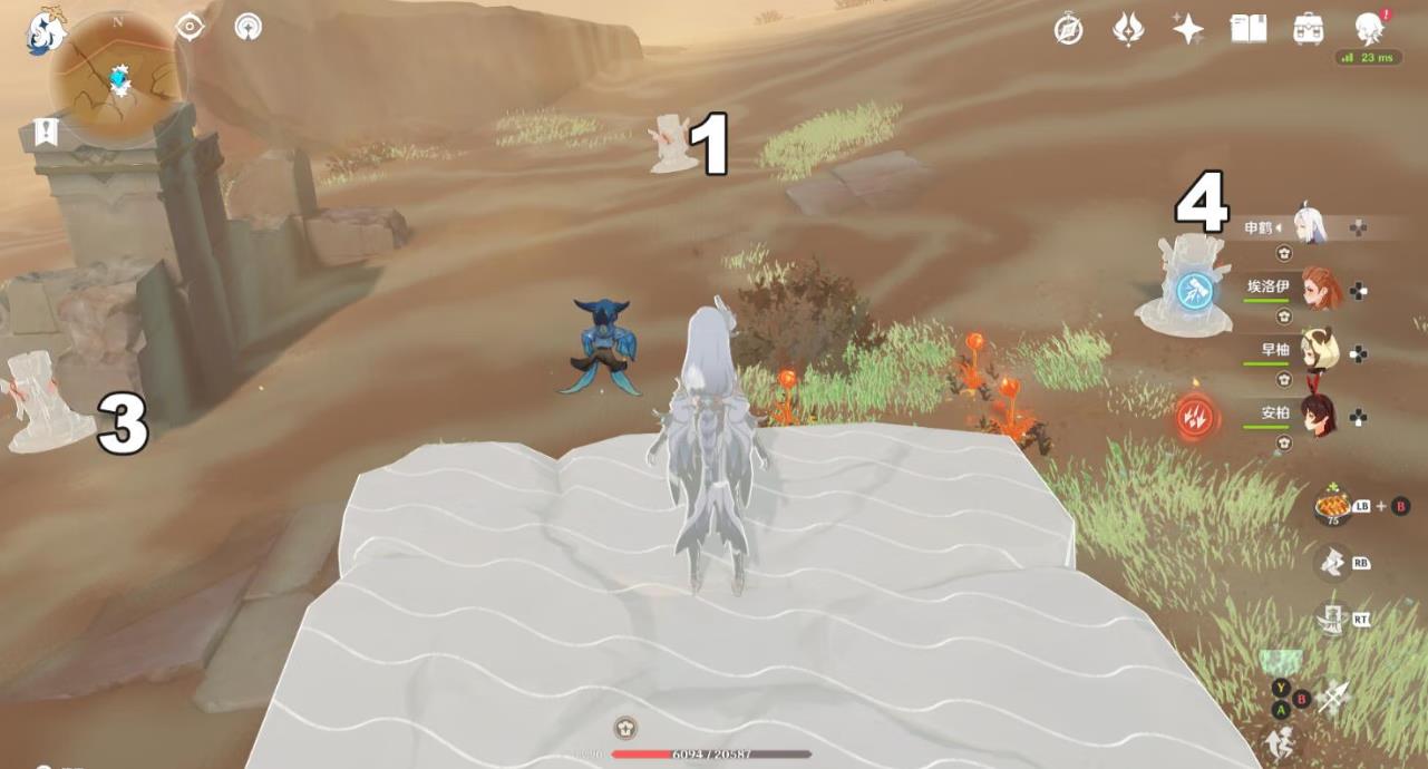 将视角转到小地图的北方 可以发现2个方碑 需要注意的是 5号方碑只能下去打 因为这附近有看不见的幻象([屏障)