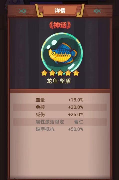 龙鱼·坚盾可以为咸将提供免控和减伤的属性,适合于辅助型的咸将。