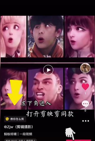 6、然后在在视频左下角进入,打开剪映剪同款。