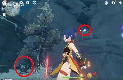 1、字条藏于河底,因此我们需要使用机关降下水位,而开启机关前我们需要解锁4个冰元素柱子。