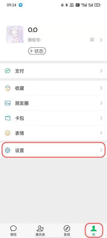 2、如果在发现页面没有视频号,在【我】的页面,点击【设置】进入设置中;