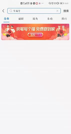 1、点击打开支付宝,然后在搜索框搜索“写福字”,点击进入。