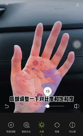 1、首先需要下载一款叫做“醒图”的软件,然后将你们的共享位置截一张图保存,还有一张你的手掌的图片。