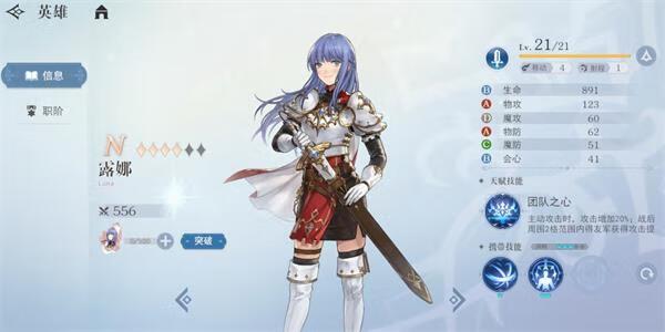 露娜可以为两格内的友方角色施加增加伤害的Buff,所以再排兵布阵的时候就要仔细去考虑团队站位了,将他放在输出角色的附近。而他的怒气技能,可以有机会降低敌方角色的攻击效果。不过这个概率还是比较尴尬的,我们还是将他视为一次强力的攻击技能吧。