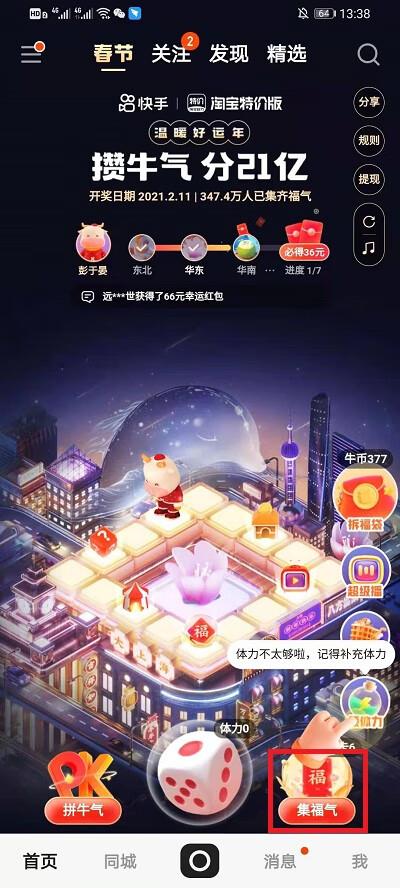 在活动的首页界面需要耗费体力去扔骰子,可以获得福卡,但是比较少的机会。