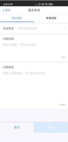 4、选择需要资讯问题的类型,进行留言!