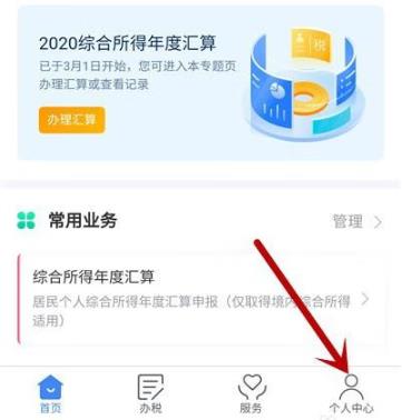 1、打开个人所得税后点击右下角【个人中心】。