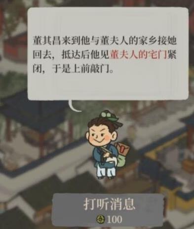 所谓的董夫人的宅门,就是将董夫人随便入住一个房子,这个房子就会成为董夫人的家,点击这个房子就可以继续任务了。