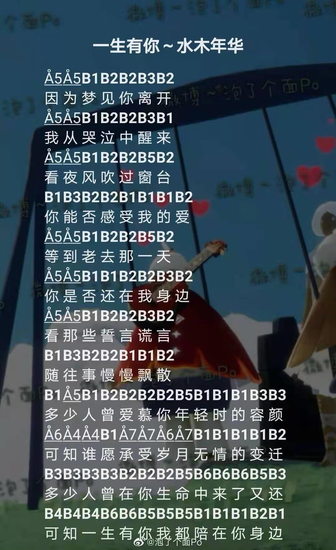 “多少人曾爱慕你年轻时的容颜”,这是一首很好听的音乐。那么,我们在游戏中要如何弹奏呢?在这里,小小编小编为大家带来游戏中关于一生有你的乐谱分享,还不知道的玩家用户快随小小编小编一起来看看吧!