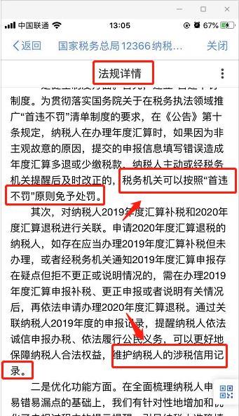 3、从法规详情中,能够了解到没有补税的用户可以经过纳税机构提现之后进行纳税,首次不会进行处罚。后续不纳税会产生【涉税信用记录】。影响到银行卡的办理、贷款、手机号码无法注册等!