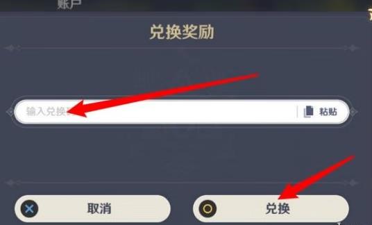 打开原神,点击左上角的头像,点击左侧的设置图标,进入设置界面,点击账户,然后点击兑换码后面的【前往兑换】,输入兑换码,点击兑换就可以了。