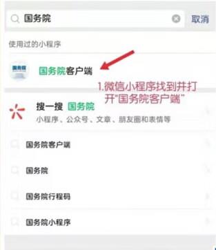 第一步:微信搜一搜,搜索国务院,打开“国务院客户端”小程序