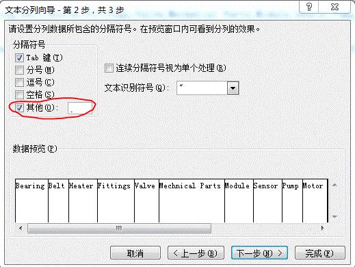 选择分隔符号,在分隔符号中,勾选其他,输入单元格中的",",然后直接选择完成。
