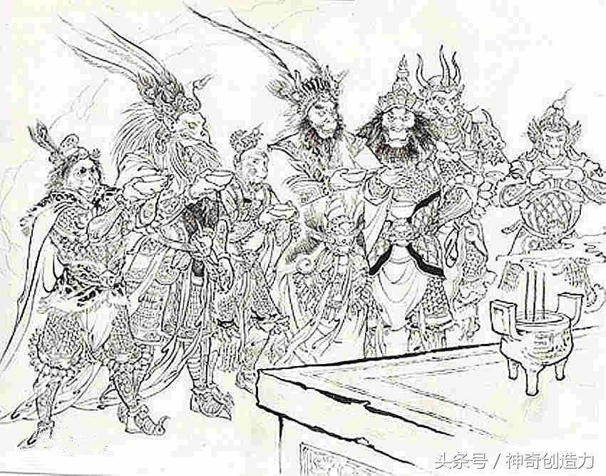次日,依旧排营。悟空会聚群猴,计有四万七千余口。早惊动满山怪兽,都是些狼虫虎豹、騃麂獐豝、狐狸獾狢、狮象狻猊、猩猩熊鹿、野豕山牛、羚羊青兕、狡儿神獒各样妖王,共有七十二洞,都来参拜猴王为尊。六大圣不是七十二洞妖王中的:你看那猴王得胜归山,那七十二洞妖王与那六弟兄,俱来贺喜。