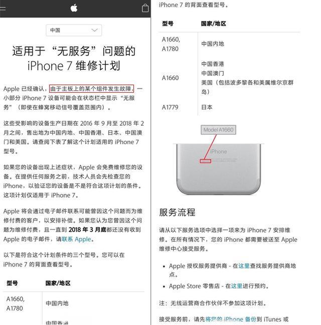 苹果发公告称:生产于2016年9月-2018年2月的iPhone 7,由于主板上某个部件发生故障,会出现“无服务”的故障现象,这批iPhone 7的销售地为中国大陆、香港、澳门、日本以及美国。