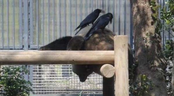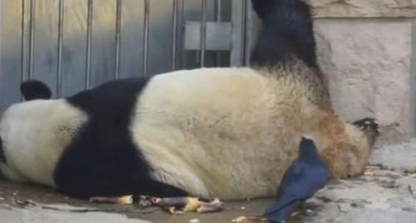 大家都知道熊猫是我国的国宝,它凭借着圆滚滚的身材,憨憨的性格获得了很多人的喜爱,不过它也获得乌鸦的喜欢,这天一只熊猫正悠闲的躺着睡觉