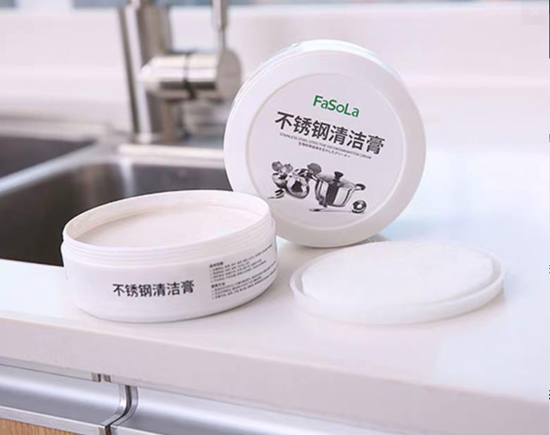 市面上有很多锅具污垢清洁剂,这种不锈钢清洁膏就能很好的祛除锅底黑垢。