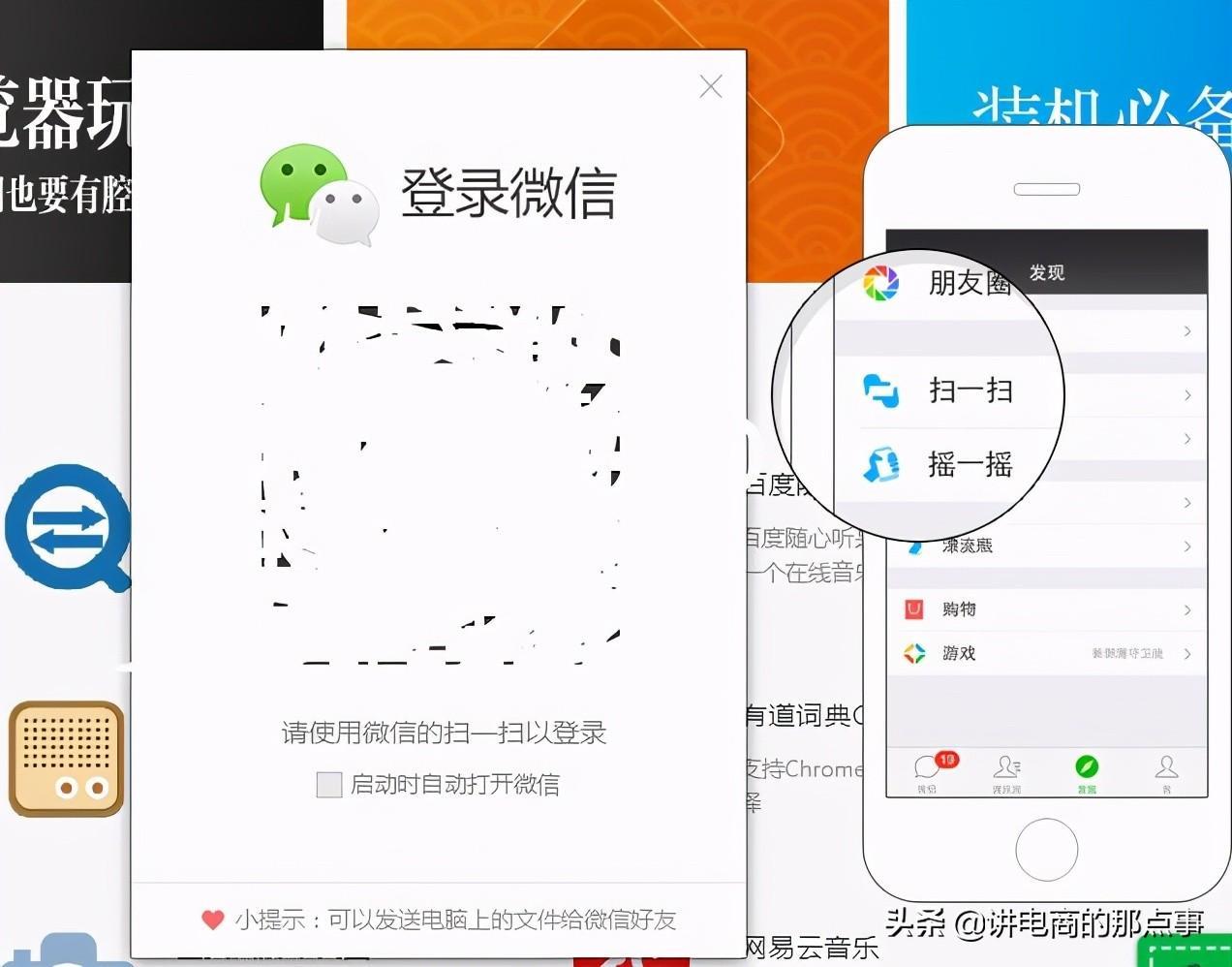 4.这时微信登录对话框中会弹出微信的二维码图标,我们用手机微信上的“扫一扫”功能对着该二维码进行扫一扫。