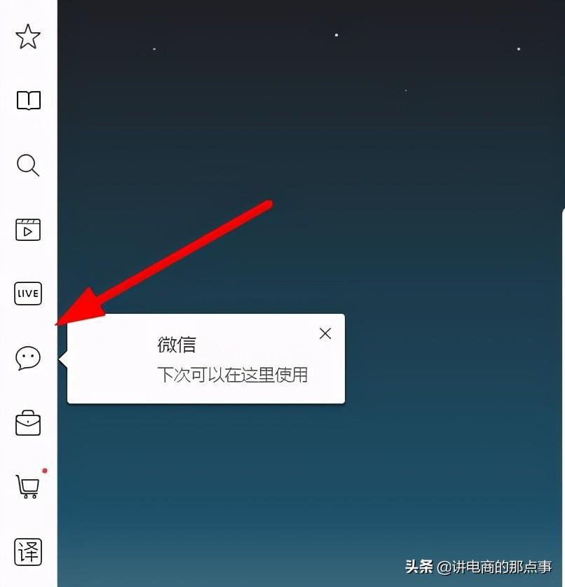 6.之后就能成功登录网页版的微信了,浏览器的左侧显示网页版微信的对话框。我们也能在浏览器左侧处看到微信的小图标(如果没有隐藏的话)。