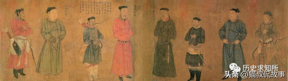 南宋刘松年所作「中兴四将」图(刘光世、韩世忠、张俊、岳飞全身立像)。岳飞为左起第二位