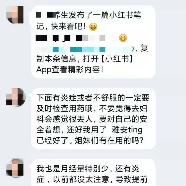 我的(妇科)炎症属于比较老实的,就是一旦上火就会发作,发作一次可比我生孩子痛苦了……然后在小红书看到了雅安ting,到现在差不多用完了,没有复发……”