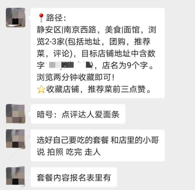 为了强迫“羊毛客”们认真“做路径”,“中间商”们甚至不会直接告诉“羊毛客”们目标商铺的名字,而是给出诸如位置、推荐菜等关键信息,逼迫“羊毛客”们像真实客户一样,自行搜索。