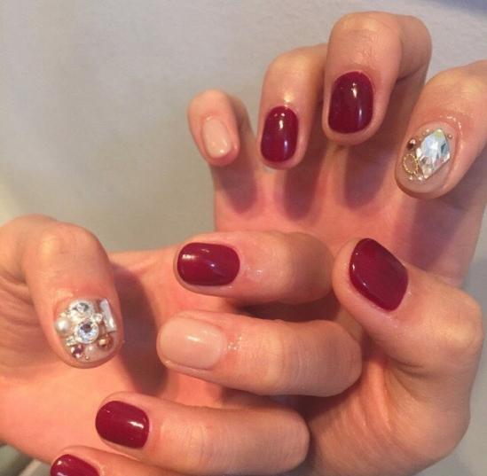 这个秋冬一定不要不错一款酒红色美甲,跳色设计+带钻,分分钟让美甲大增时髦指数,涂在手上一点也不掉价。