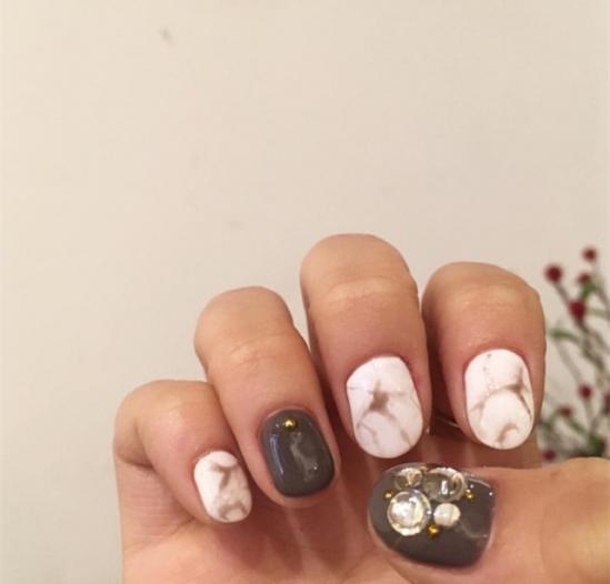 大理石纹理的美甲也是今年一大流行款式呢,加入跳色与钻设计,整个美发好看到不行呢,时尚更显手部气质。