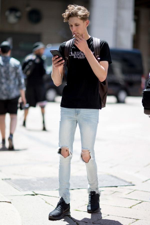 觉得自己肤色太深不适合白T?没关系,深色T恤其实也是夏季首选,还非常显瘦~微胖男生不想穿白色T恤的话一件黑色T恤也是白搭又好看!当然啦,太瘦的男生不太适合深色的T恤,不然看起来非常没有精神。
