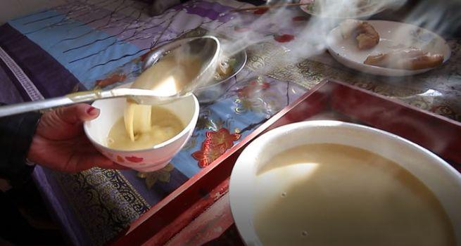 陕北的羊杂碎量大且实惠,走在街上随处可见羊杂碎店铺,这也可以说是陕北的一大特产了 。羊杂碎,即以羊内脏制成。用羊棒骨辅以各种香料熬出乳白色的骨汤,再烩入粉条,切好的羊血,羊肚,羊头等。上桌后早舀一勺羊油泼辣子,色香味俱全。全羊宴