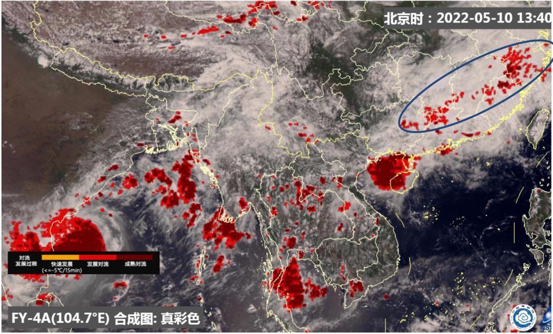 FY-4A静止气象卫星5月10日监测到的珠江流域对流发展过程 图/国家卫星气象中心