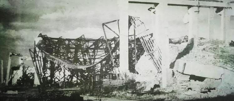 解放军于1948年11月接收北陵机场及工厂时的厂房废墟。