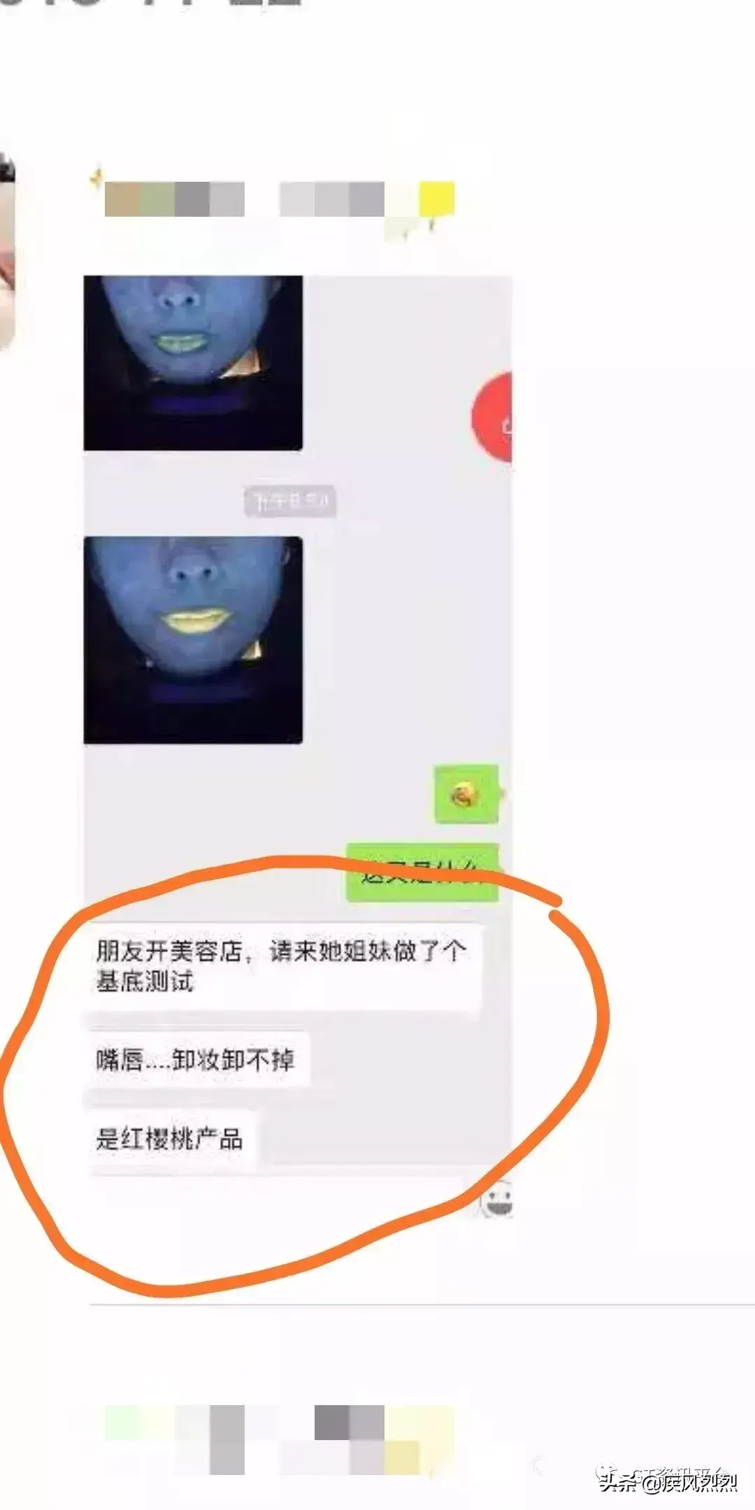 在紫光灯下显现幽幽黄光的嘴唇是在使用传奇今生唇膏后的效果。据拙妻科普:该产品可能含有荧光剂!(关于荧光剂的危害,大家上网一搜便知)。