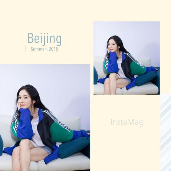 而拍得立中的杨幂有种复古的感觉,蓝色的印花T恤看起来十分青春,红色的指甲油将杨幂双手衬托的更加白皙,少女感十足