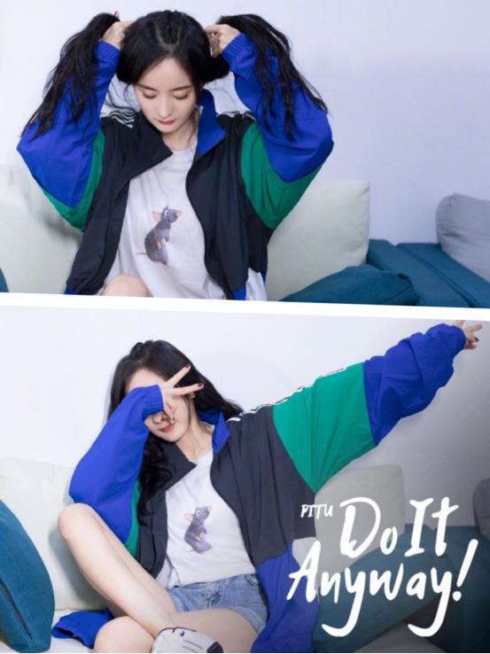 而杨幂的这件拼接外套正是由黑、白、蓝、绿四种颜色的拼接而成,白色T恤作为内搭,牛仔短裤与之搭配还有经典的小白鞋搭配,浑身洋溢着青春的气息,少女感十足