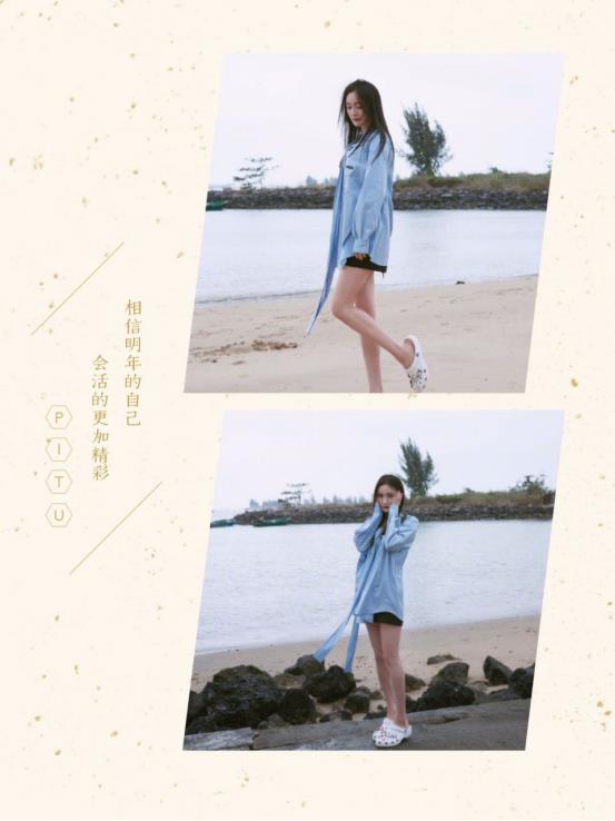 还有就是他拍图片中的杨幂,她的美腿是一个不可或缺的存在,海边的美与杨幂的美重叠在一起形成的double美。蓝色的长款衬衫搭配黑色的短裤,下身失踪的穿搭风格展现,长长的丝带轻轻飘浮