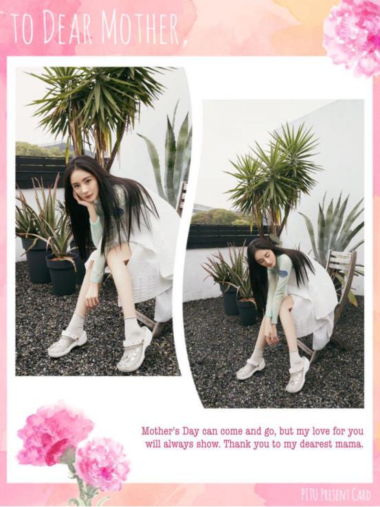 在这场景中,就算是脚上的拖鞋也影响不了整体的美感;除了休闲时尚的穿搭,还有比较少女的穿搭,浅绿色的长袖作为打底,洋溢着清新之感