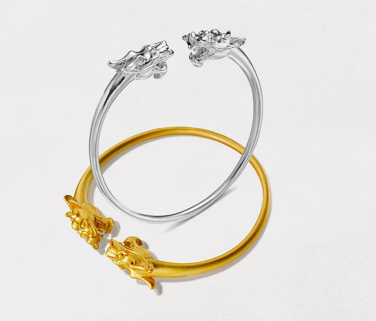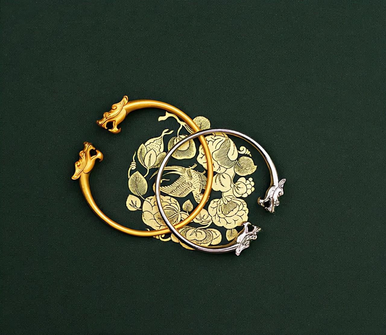 手镯的两端各装饰一个口中衔珠或不衔珠的龙头,寓意“二龙戏珠”。