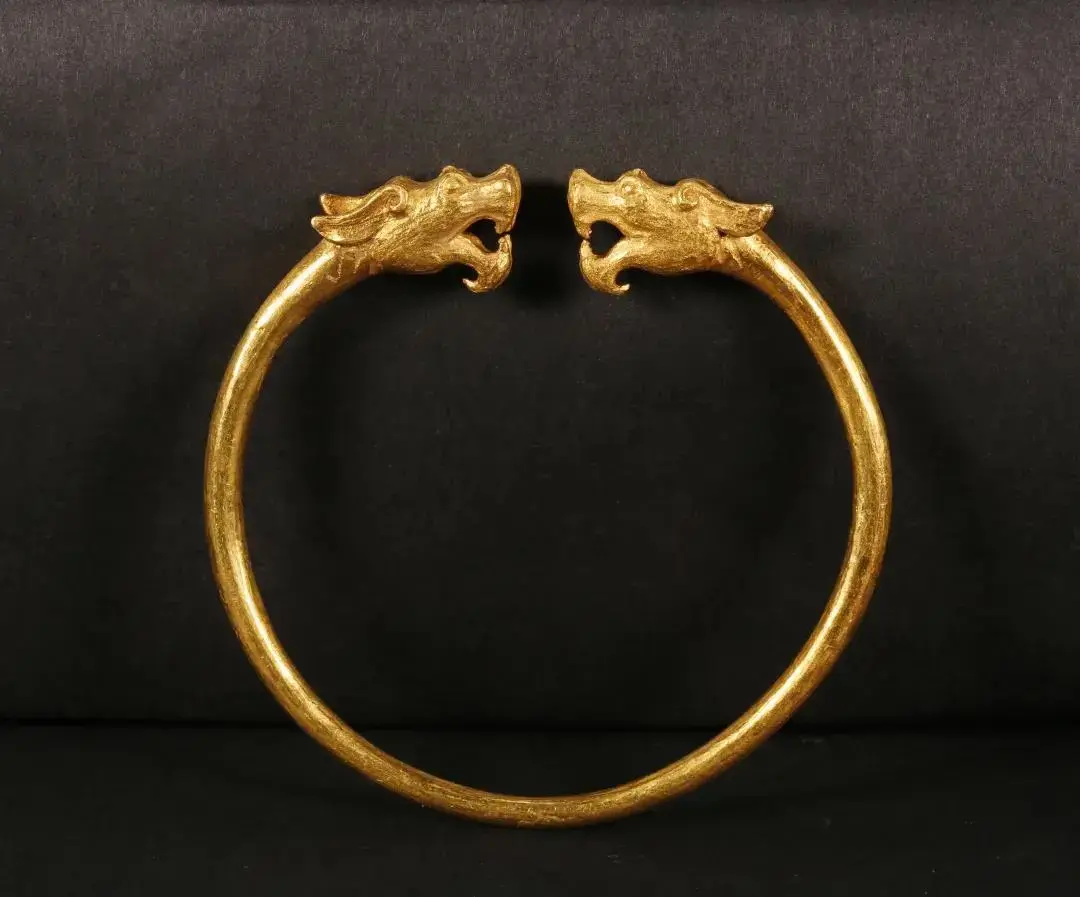 而观复博物馆所藏的龙首金镯,应该可算作此类龙首镯较为初期的制式。