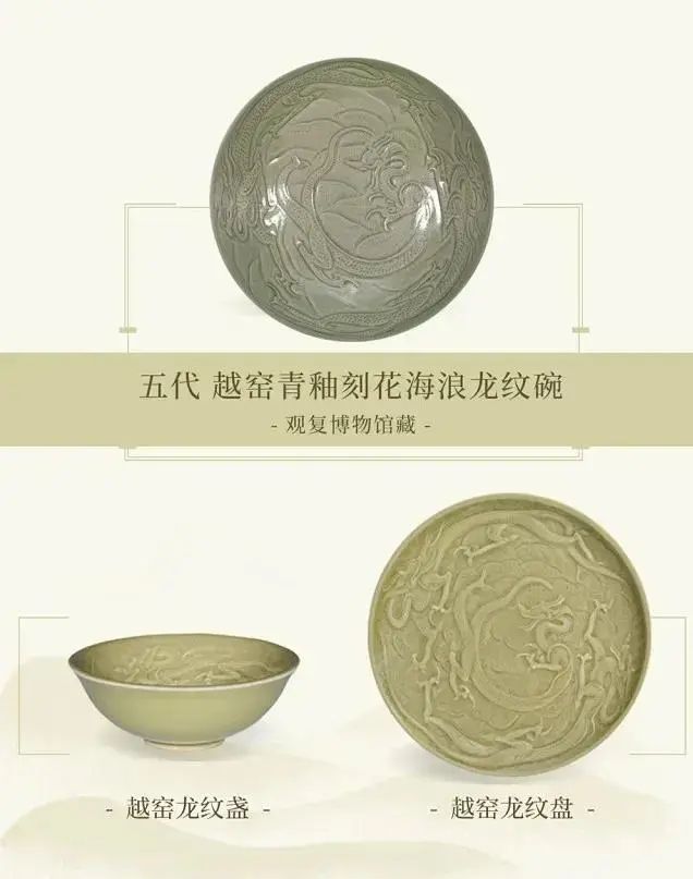 观复博物馆以这件五代时期越窑龙纹碗为纹饰原样,烧制了一盏一盘。