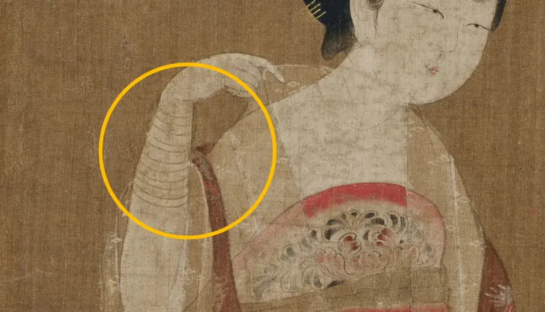 周肪的《簪花仕女图》中,身着轻柔纱衣的女子戴的层叠圈状饰品,形制就与古籍中描绘的跳脱十分相像。