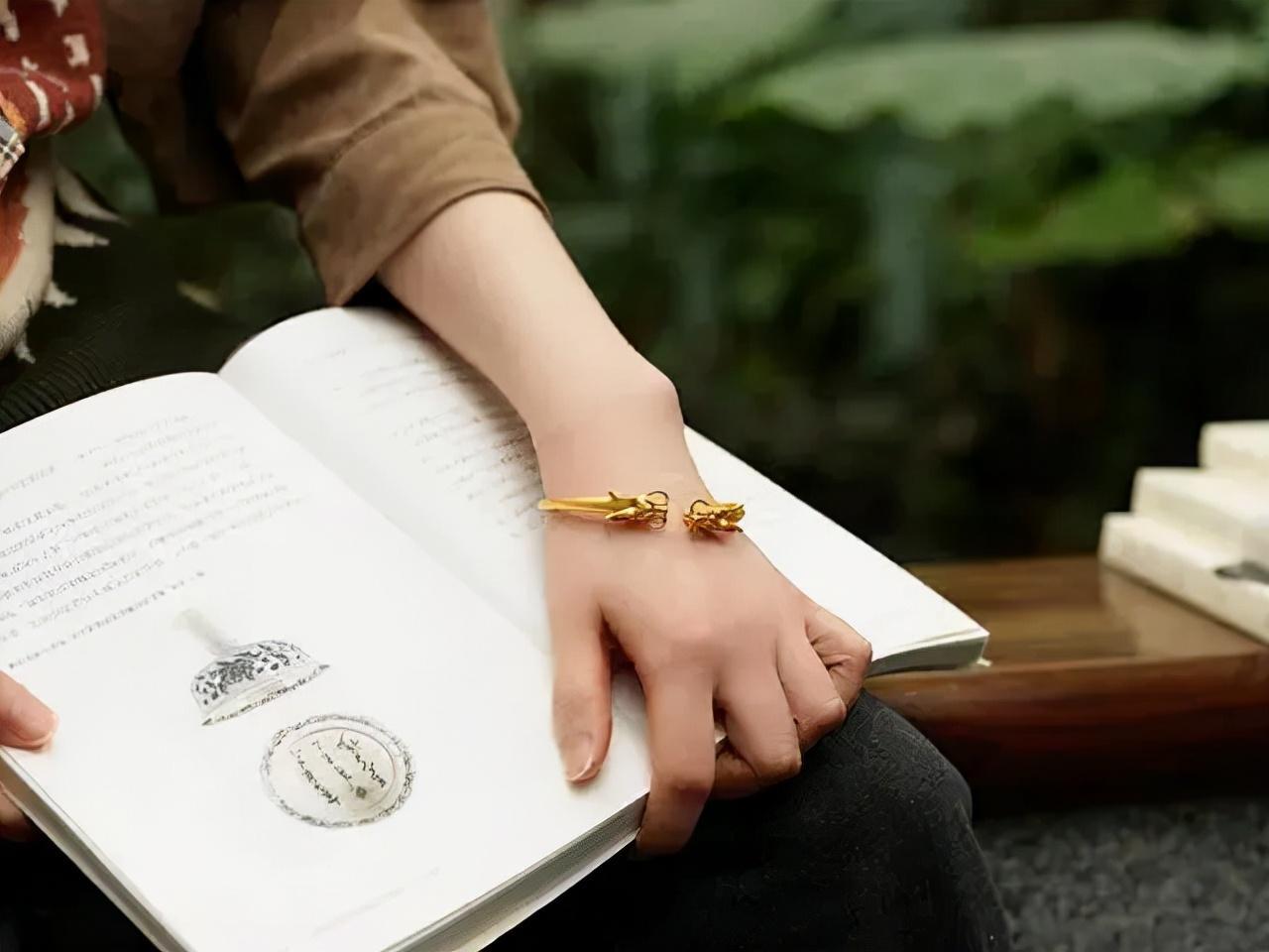 观复博物馆以馆藏「六朝龙首金镯」为蓝本,摹古复刻,推出「金琼瑶瑛·龙首手镯」。