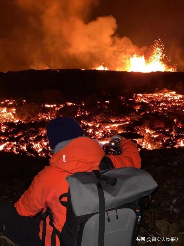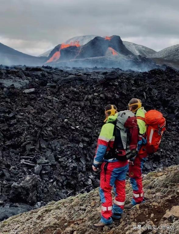 (冰岛Meradalur火山喷发时候爬火山拍照)