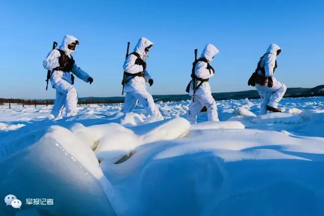 “南海第一哨”是长夏无冬,而“北极哨所”却是冬长夏短。春节前夕,“北极哨所”的边防官兵已经穿上了皮大衣。笔者从营区的瞭望塔上,下到冰雪覆盖的江面上,和身着白色斗篷戴着只露眼睛和嘴巴头套棉帽的官兵们一起,在高低不平的冰雪中,深一脚浅一脚艰难前行巡逻时,按快门的右手食指很快就被冻僵了。