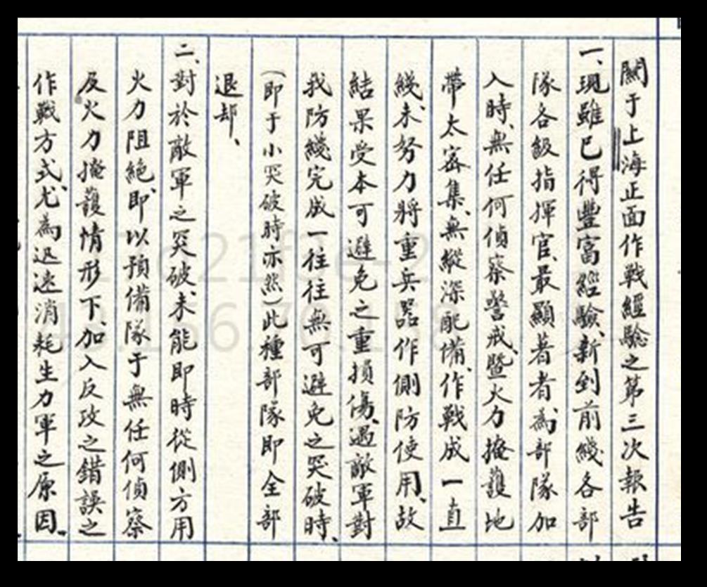 八月份,国军先是处于攻势状态,紧接着又抗击日军登陆,战线不稳定,法肯豪森没能深入一线观察,因此血压控制得还不错。到了8月30日,日军第一波增援登陆完毕,双方进入阵地战阶段后,总顾问就绷不住了。9月7日,他气急败坏的向蒋公报告: