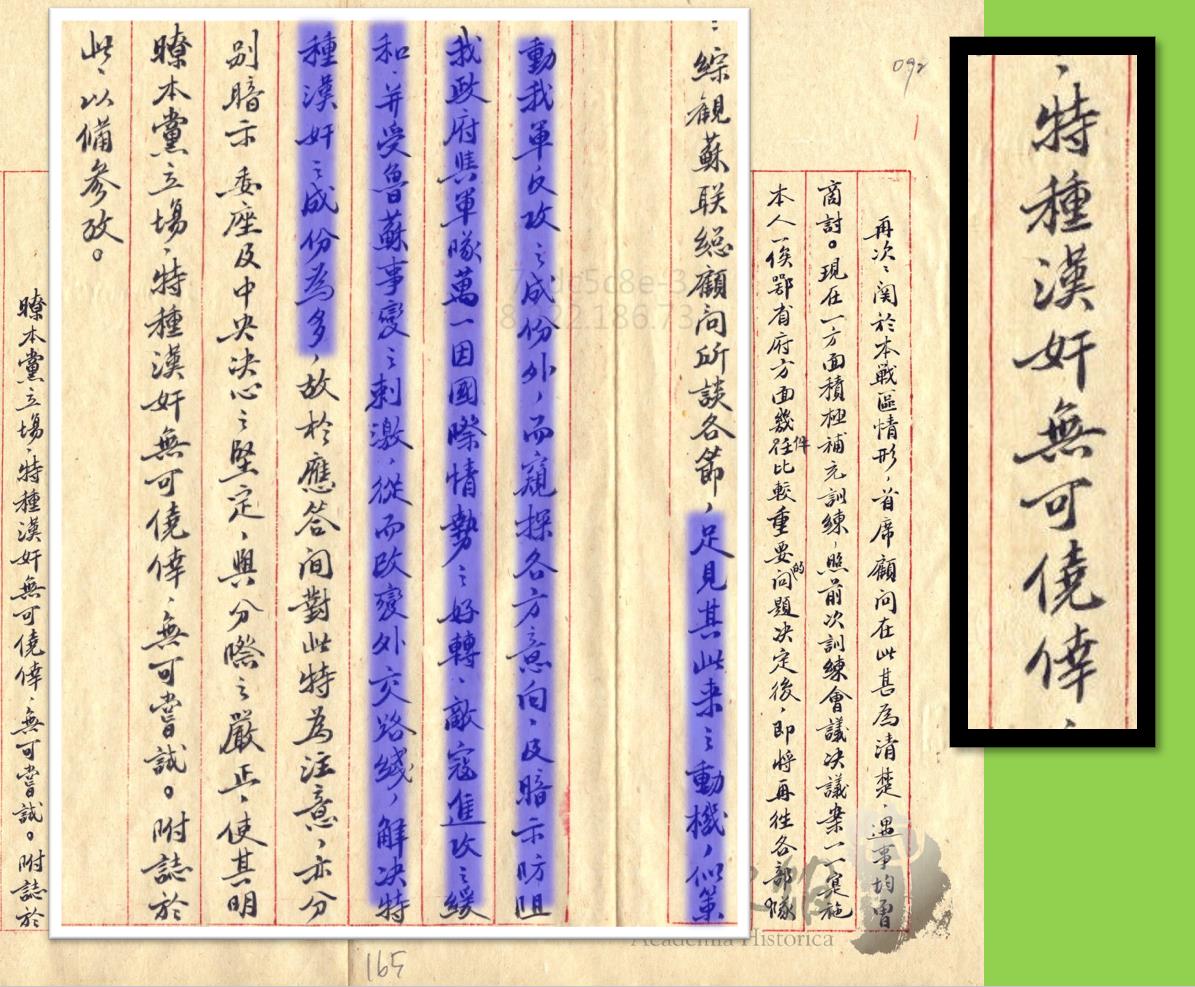但根据1939年戴笠报告,国军各个战区司令和高级将领,对苏联顾问也是敷衍了事,对武器、战术漠不关心,反而经常向苏联顾质问什么“康米主义和三民主义哪个好”、“苏联人民平等不”,个个争当蒋公好弟子,好像觉得把这类的脑血栓问题提出来,就能对人家搞什么策反似的;