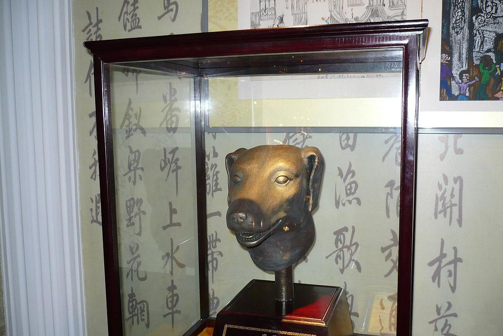 圆明园十二生肖兽首铜像原为外的喷泉的一部分,是清乾隆年间的红铜铸像。1860年英法联军侵略中国,火烧圆明园,并且抢掠了十二生肖兽首及其他众多的圆明园文物,兽首铜像开始流失海外。