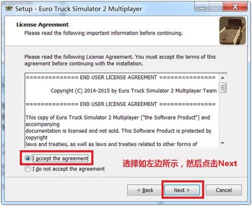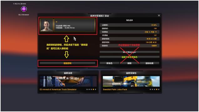 点击“PLAY”以后,就启动欧卡2游戏了,就按照如下图所示的方式进入联机即可