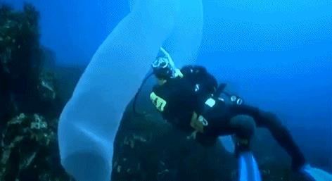 十几米长的巨型怪虫吓坏潜水员,一张大嘴堪称海洋版「沙虫」