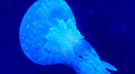 每个个体体内均有一副发光器官,不仅我们看起来好看,对它来说也能通过光芒吸收更多的小浮游生物在身边聚集,吃个饱饭。